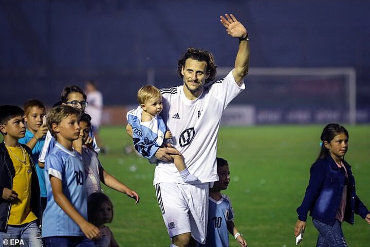 Former Uruguayan internationals showed their support too as Sebastian Abreu and ex-captain Diego Lugano were seen in the line-up that played against him, with Forlan picking a team of his closest friends and team-mates.