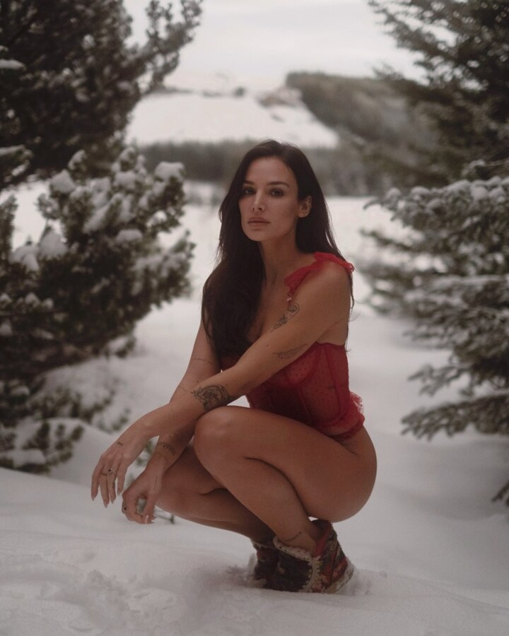 Chelsea icon Frank's daughter joked "And then I wonder why I'm still sick" as she posed in red lingerie amid white-flaked Icelandic countryside.