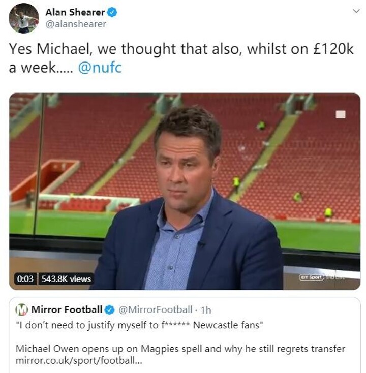 Responding to a sly dig from Shearer on Twitter , Owen said: "Not sure you are as loyal to Newcastle as you make out mate.