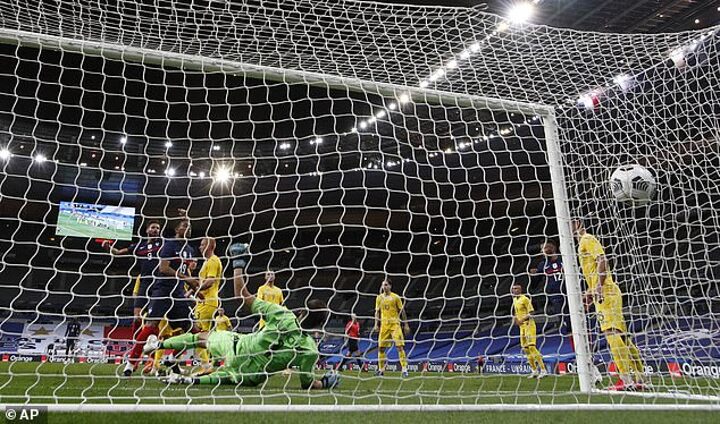 Camavinga put France ahead on nine minutes with a clever overhead kick after Giroud's header had been parried by Heorhiy Bushchan.