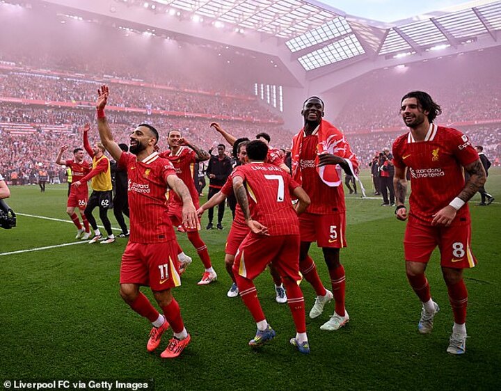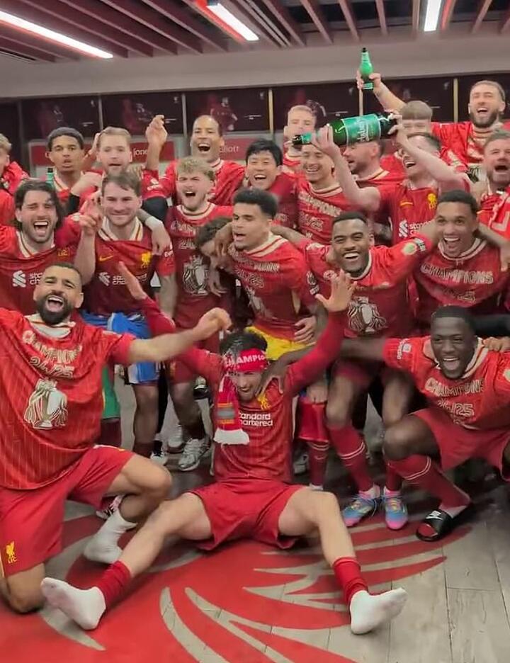 A 5-1 victory over Tottenham finally secured the club a record-equalling 20th top-flight title, drawing them level with bitter rivals Manchester United, and Arne Slot's side wasted no time in toasting their success in style.