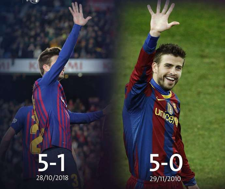 In fact, Gerard Pique is the only Barcelona player to start the 6-2, the 5-0, the 4-0, the 3-0, the 5-1 and the 3-0 Clasico wins of the 2009-2019 period.
