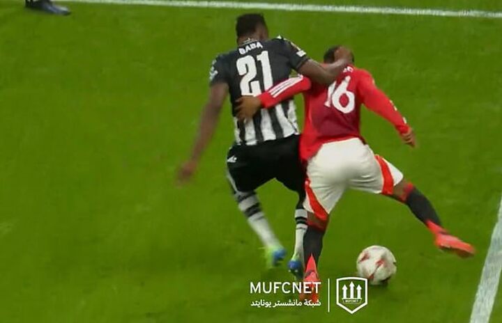One furious fan posted on X: 'HOW IS THIS NOT A PENALTY ON AMAD?'