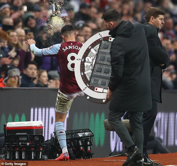 Seething he didn't get the chance to make up for his error, Sanson took his frustration out on pitch-side paraphernalia as his team-mates watched on – with a couple of bottles flying into the Villa Park crowd.