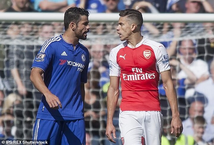 Costa had swiped Koscielny round the face and then barged him to the ground. Gabriel had stepped in, but then stepped back on to Costa’s toe, earning that red card.