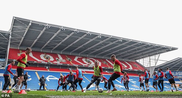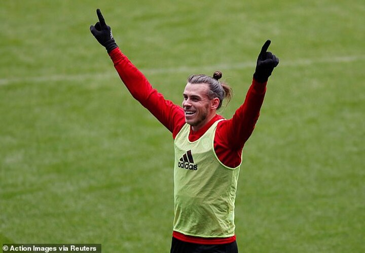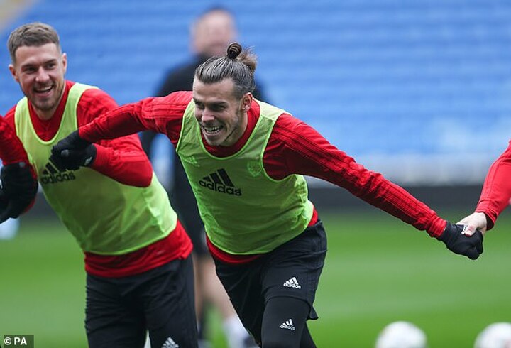 Gareth Bale was all smiles as he took part in Wales training ahead of the country's crunch Nations League match against Denmark.
