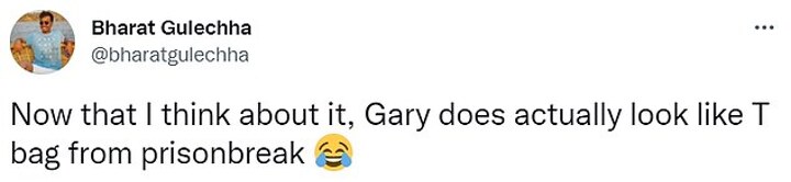 Another added: 'Now that I think about it, Gary does actually look like T Bag from Prison Break.'