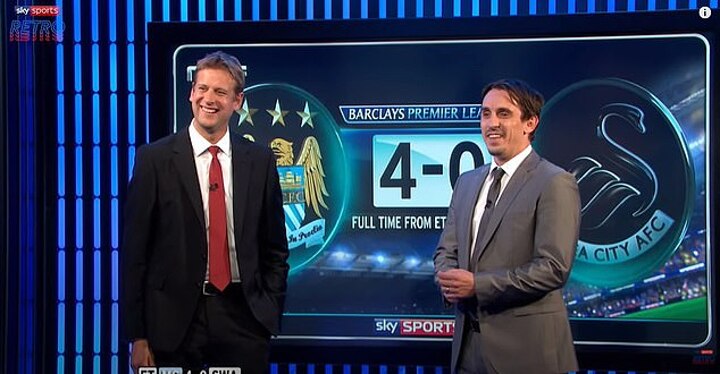The former Manchester United defender turned to punditry after retiring the prior season, with his first game seeing Manchester City thrash Swansea 4-0 in a match that saw Sergio Aguero make his debut.