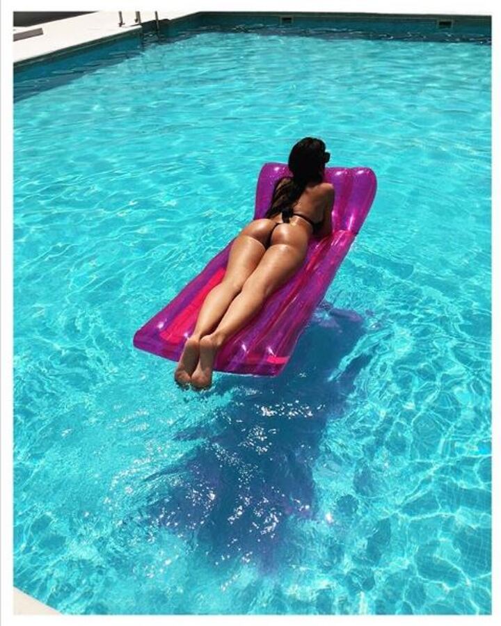 She posed in a skimpy bejewelled bikini and sunglasses as she smouldered for the camera.