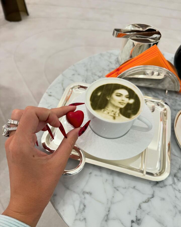 She completed her post with snaps of their food, a coffee and an advert showing one of her photoshoots.