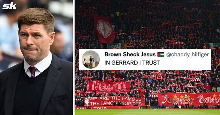 Supporters took to Twitter to react to Cash's goal in the first half, with many urging Liverpool icon Gerrard to inspire his current side to help the Reds win just their second league title in 32 years: