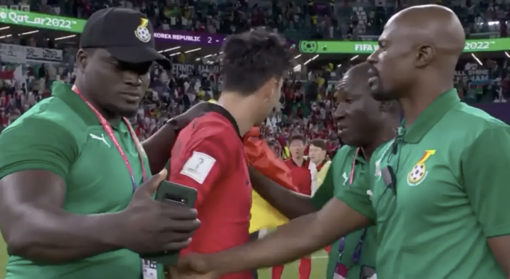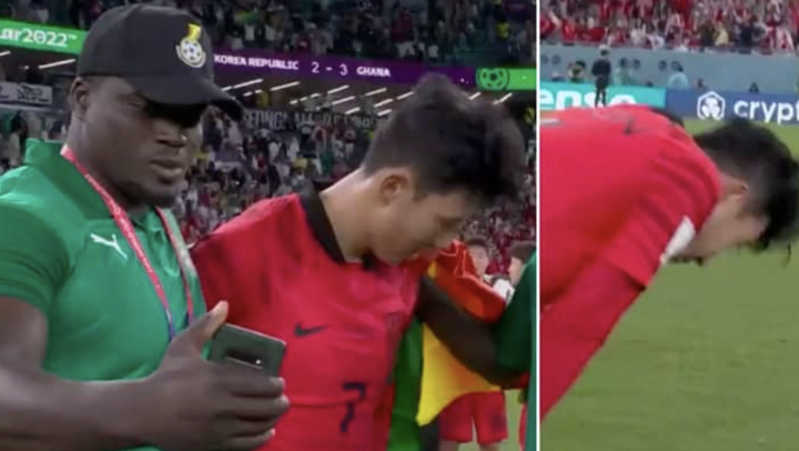 A Ghana coach has caused controversy online after taking a selfie with a crying Son Heung-min seconds after their 3-2 win over South Korea at the World Cup.