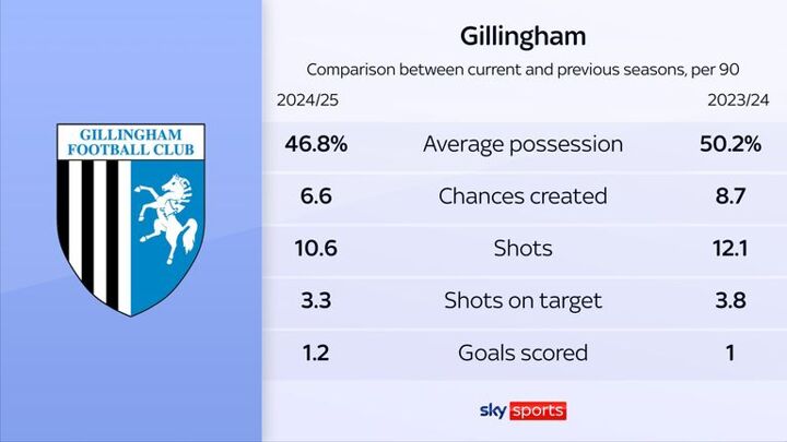 Comparing the start of the Bonner regime to last season, Gillingham are averaging less possession per game, creating fewer chances and conceding more shots - but also scoring more goals, conceding remarkably fewer and picking up more points.
