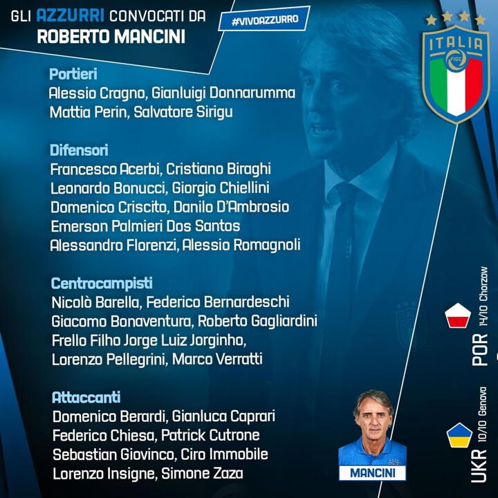 Italy face Ukraine in a friendly on October 10, before taking on Nations League rivals Poland four days later.