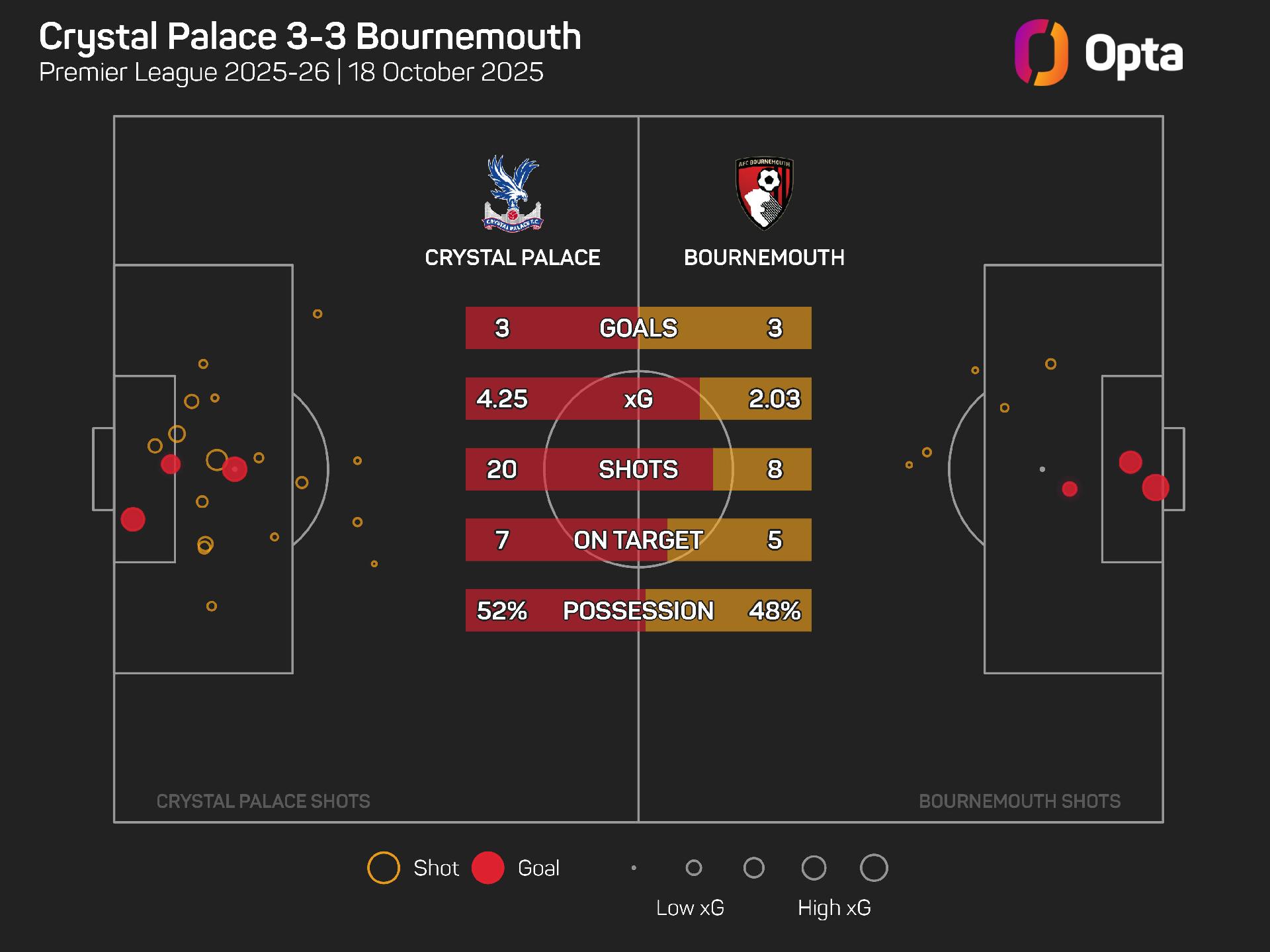 Glasner was delighted with how effective his side was in front of goal, with Palace generating an expected goals (xG) tally of 4.3 overall, compared to 2.0 for Bournemouth.