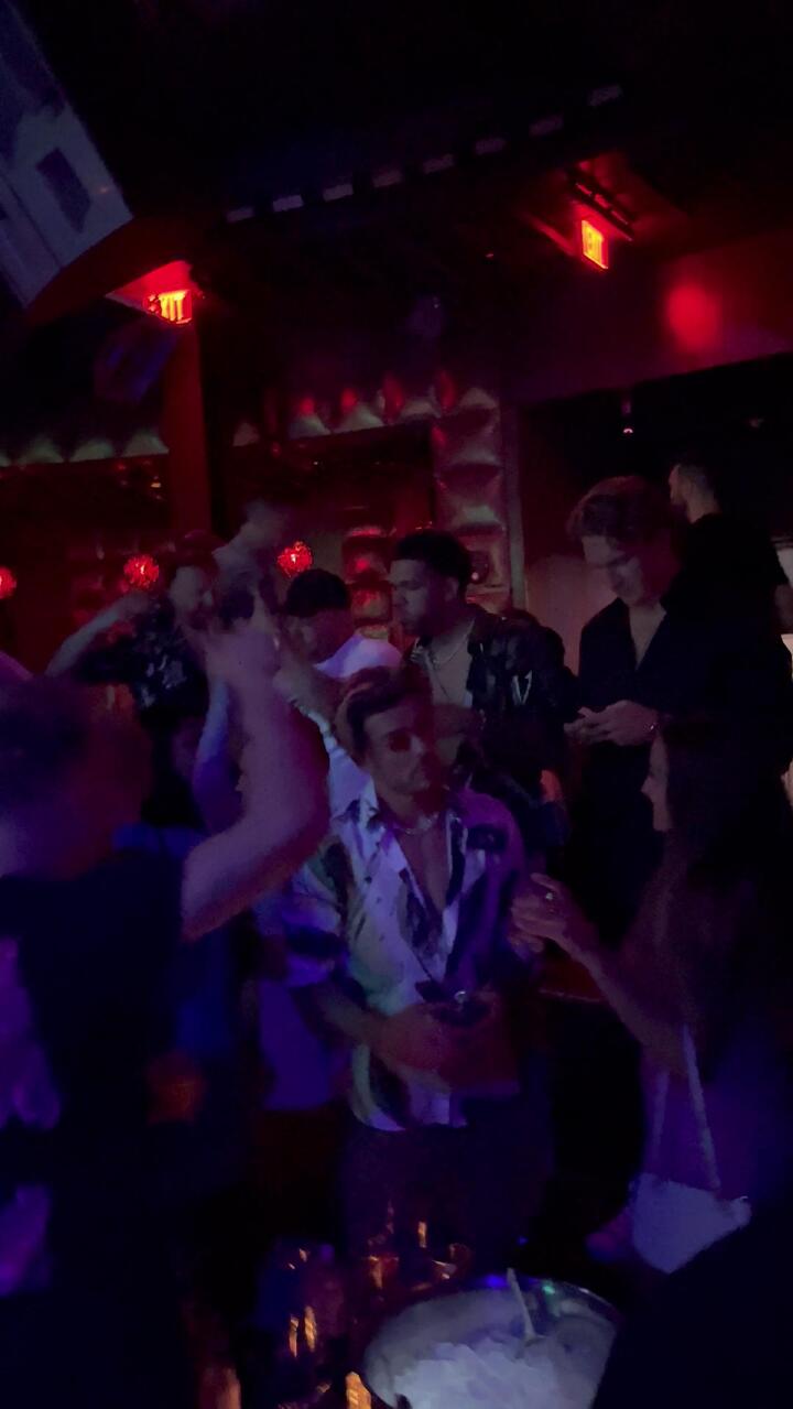 Our exclusive pictures show the £100million star on an escalator outside the Marquee club, and earlier talking with girls.