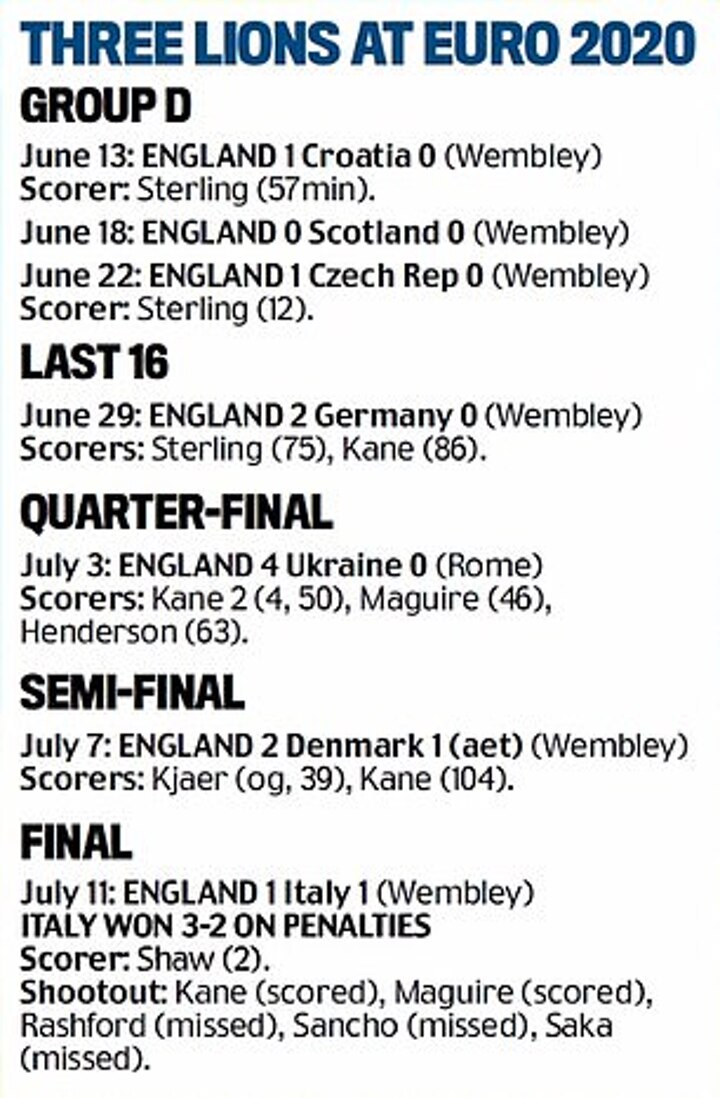 So England’s progress through a European Championship that — thanks to a kind draw — was played almost entirely at home was a journey accompanied by rare optimism. Not until those three successive missed penalties late on Sunday, July 11, did England stray from the script.