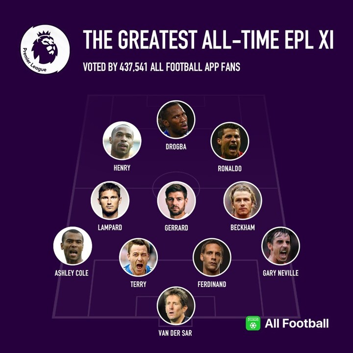 The Premier League was 26 years old and has been the home of some of great players. 437,541 AFers have voted for their greatest Premier League XI of all time, here are the results: