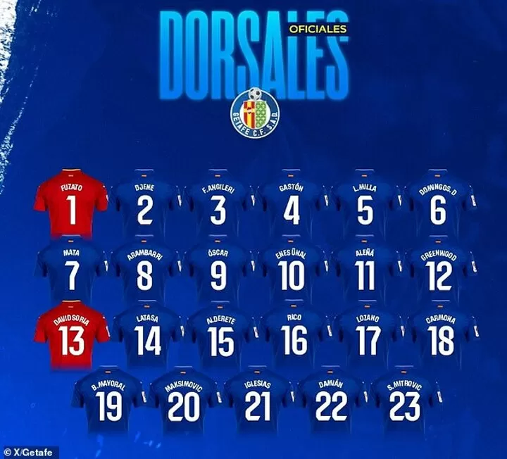 Getafe have now revealed in a social media post that Greenwood, who wore No 11 at United, will wear 12 for the remainder of the season.