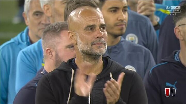Guardiola, meanwhile, continued to cry as fans again began to chant the midfielder's name.
