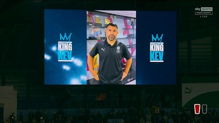 'Hi Kevin,' Aguero began. 'Congratulations for your career, it was an honour to play with you, I wish you all the best my friend, of course you are a legend at Manchester City. And me too. See you bro.'