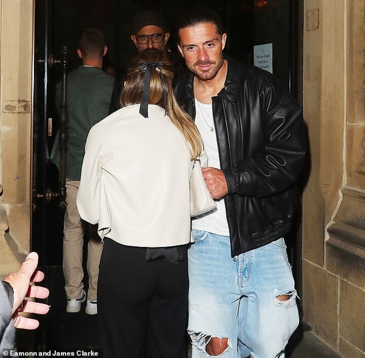 Grealish was the last to leave at 1.35am, decked out in ripped jeans as he was reportedly forced to squeeze his way past a drunk member of staff on his way out.