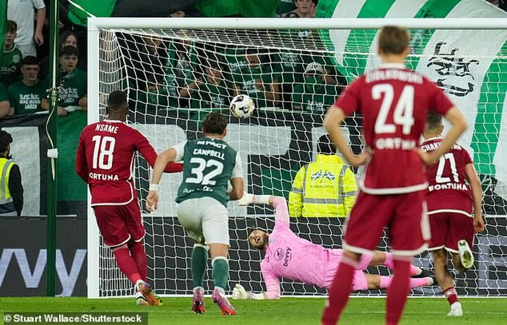 Nsame kept his cool amid the voluble derision of the Hibs fans, smashing the penalty high beyond Smith.