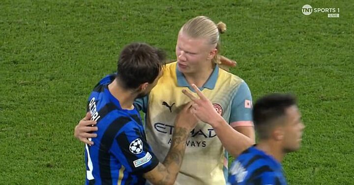 Erling Haaland appeared to give a hilarious x-rated response to Francesco Acerbi after Manchester City's 0-0 draw with Inter Milan in the Champions League.