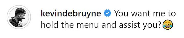 De Bruyne replied in the comments section and said: ‘You want me to hold the menu and assist you?’