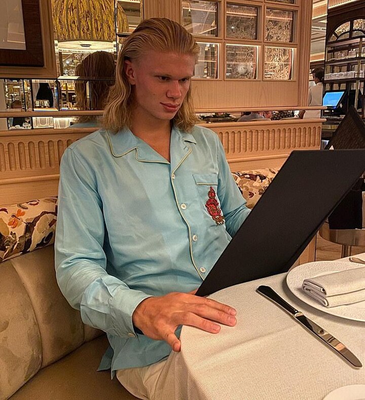 Haaland posted a photo on Instagram at a restaurant with the caption, ‘About to order the whole menu’.