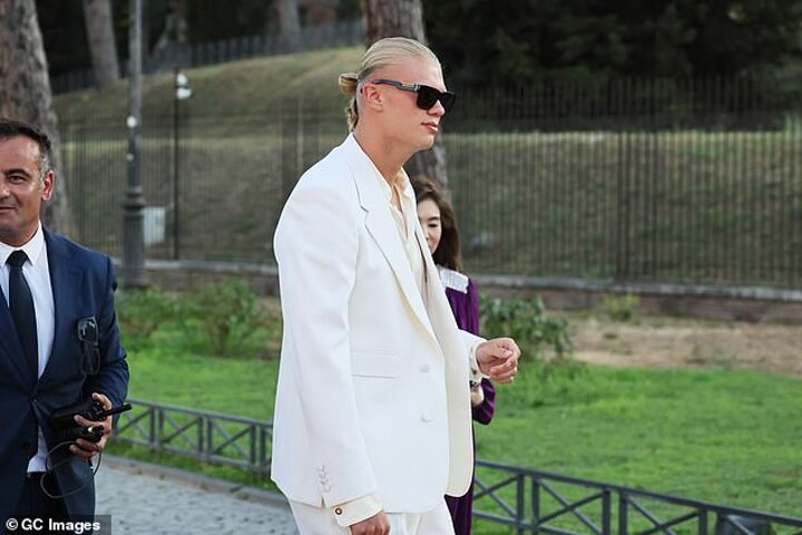 Erling Haaland continued to enjoy his summer break as the Manchester City forward was pictured attending the Dolce & Gabbana Alta Moda fashion show on Monday.