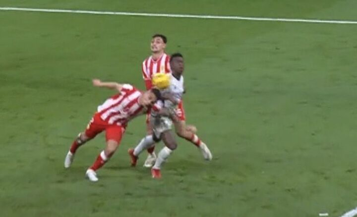 VAR ruled out Almeria’s goal for a very light foul on Jude Bellingham. But VAR then did not rule out Vinicius’ latest goal, which appeared to be scored as much with his arm as his shoulder.