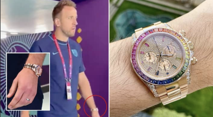 Harry Kane was spotted wearing a rare Rolex 'Rainbow Daytona' watch ahead of England's World Cup opener against Iran.