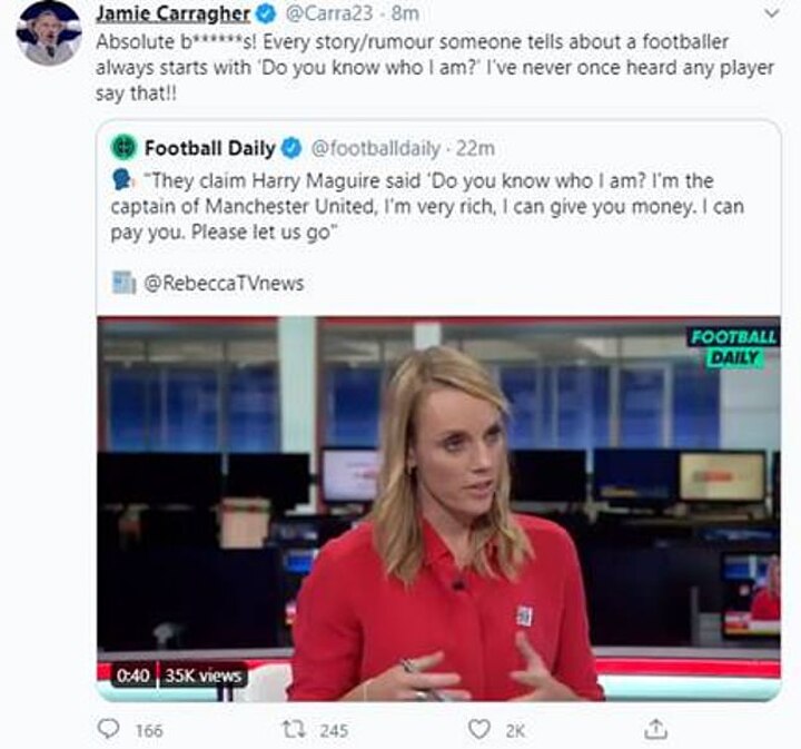 Sky Sports pundit and former Liverpool star Jamie Carragher led a defence of Maguire online, refuting the claims from Greek police.