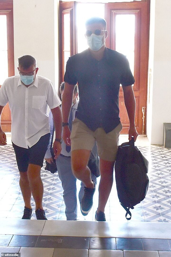His lawyers represented him in court and his father Alan arrived shortly after 11am local time ahead of the trial.
