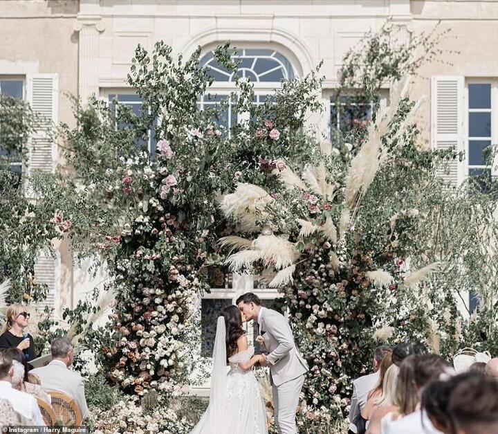 The England defender, 29, shared the first snap of their wedding to his Instagram page on Saturday afternoon after they tied the knot in a luxury 100-acre, £350-a-night 13th Century French Château.