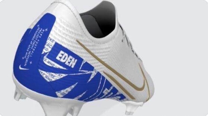 Eden Hazard's boots at Real Madrid. The Blue is in honour of the time he spent at Chelsea, whilst the white and gold represents his present at Real Madrid.