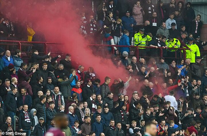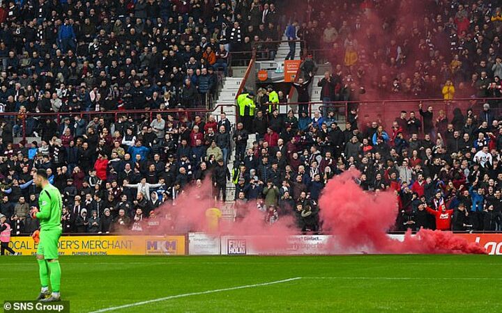 There was a fever-pitch atmosphere inside a packed-out stadium and minutes into the contest Hearts' fans again launched a maroon flare onto the field of player, leaving players fighting through a cloud of smoke.