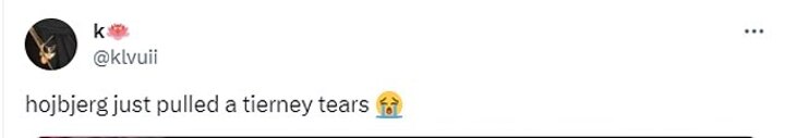 A further fan said: 'Hojberg just pulled a Tierney - tears.'