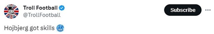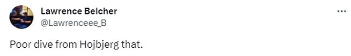 Another quipped: 'Poor dive from Hojbjerg that,' while a further fan joked: 'Hojberg got skills.'