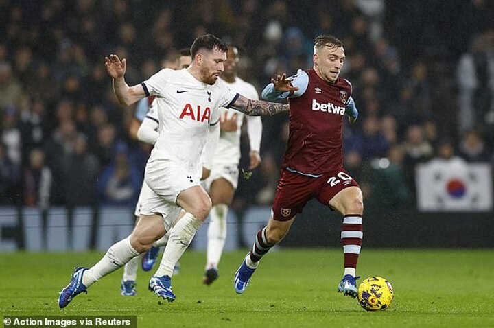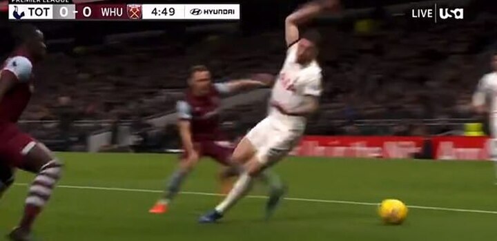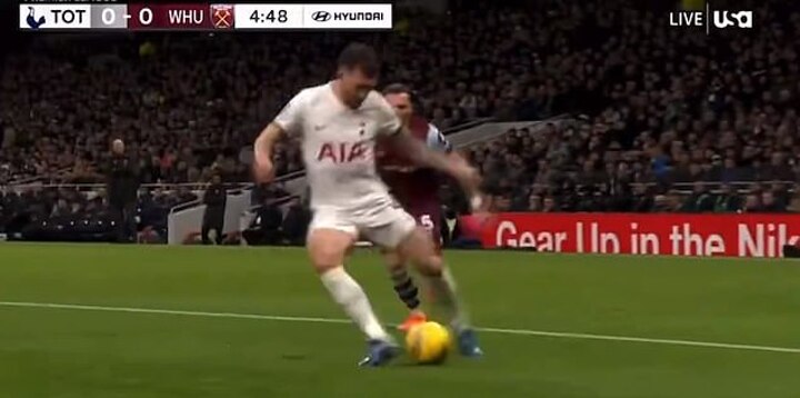 Tottenham midfielder Pierre-Emile Hojbjerg was the victim of an unfortunate gaffe on the ball during their game with West Ham on Wednesday.