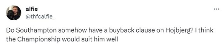 One added: 'Do Southampton somehow have a buyback clause on Hojbjerg? I think the Championship would suit him well.'