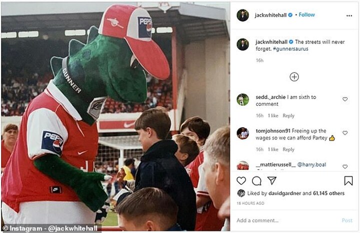 Whitehall meanwhile added: 'The streets will never forget,' with a picture of the mascot while former Arsenal forward Ian Wright said: Terrible news. Love you Jerry.