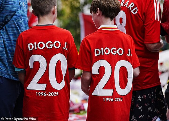Jota's Liverpool team-mates flew in overnight. They included Virgil van Dijk, the club's captain, and Andrew Robertson, who carried red wreaths in the shape of football shirts emblazoned with Jota's number 20 and his brother's number 30.