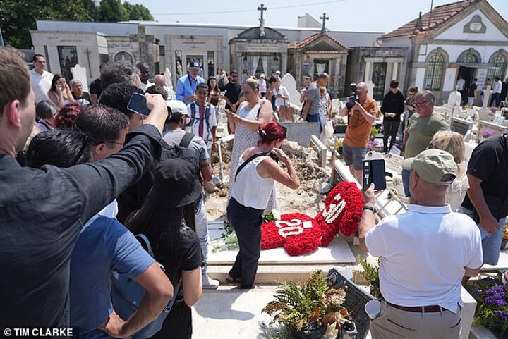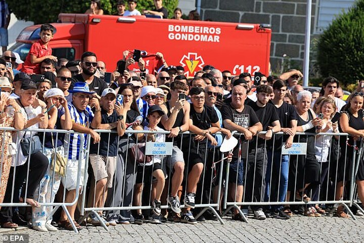 Thousands of the town's residents, many wearing Liverpool or Portugal colours, gathered on all sides of the church grounds to hear the eulogies before the brothers were laid to rest in the Sao Cosme cemetery a short walk away.