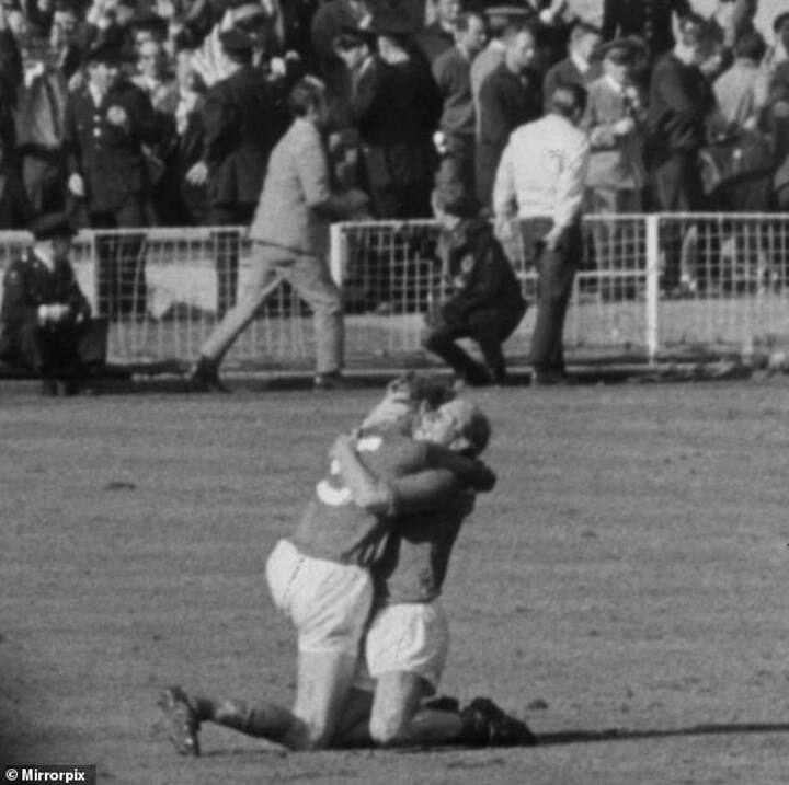 It was an embrace between two footballing brothers that encapsulated the national mood of elation after England's 1966 World Cup triumph.