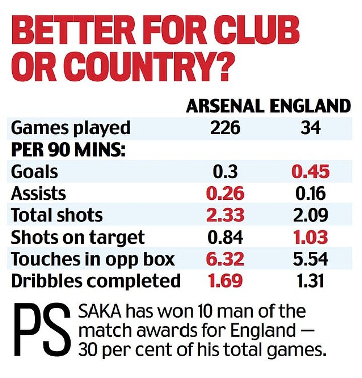 After one Premier League game last season, they were horrified to see a gaping wound on Saka’s leg after he rolled down a sock, only to be even more astonished when he declared himself fit to play a few days later.