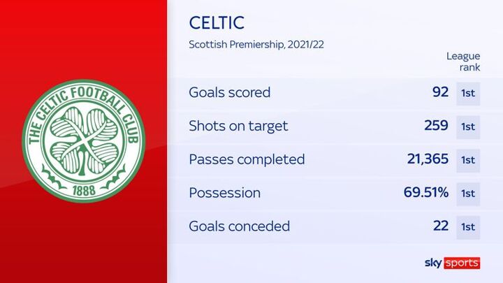The statistics provide ample evidence to suggest Celtic were deserved winners this term, registering league-topping numbers across every key metric, including goals, shots on target, assists, possession and goals conceded.