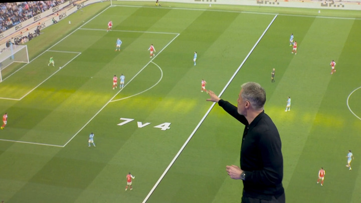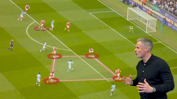 "What happened initially was Rodri and Silva had Declan Rice and (Martin) Odegaard coming right at them, so they couldn't get the ball into the players there," said Carragher.