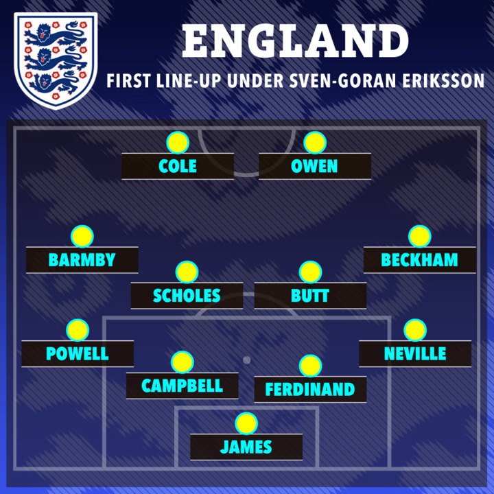 Sven-Goran Eriksson took charge of his first England game as manager in 2001.